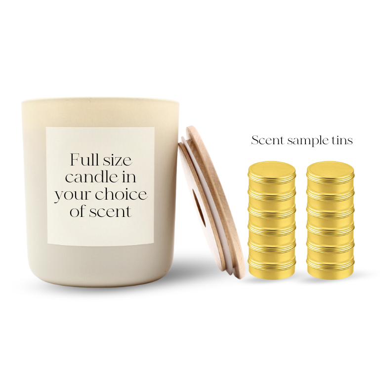 Sample kits include all 12 of our signature fragrances and your choice of full-size candle so you can select your fragrances and test the burn before you place your order.